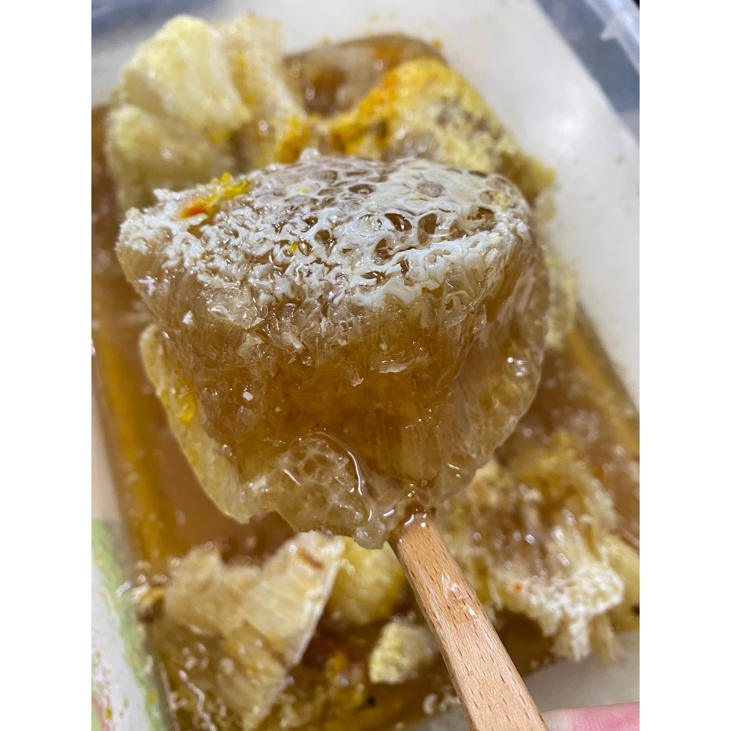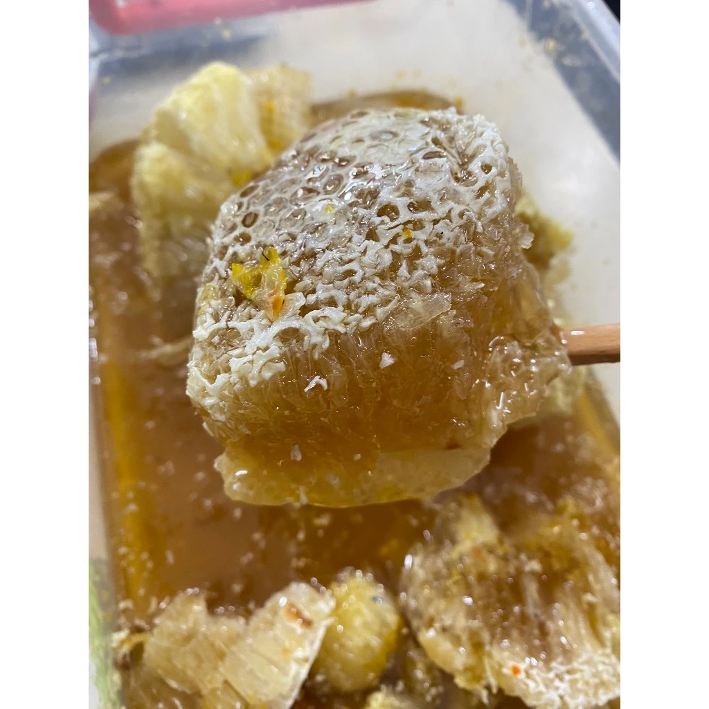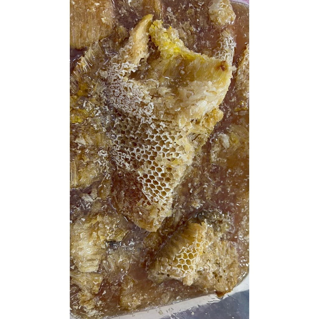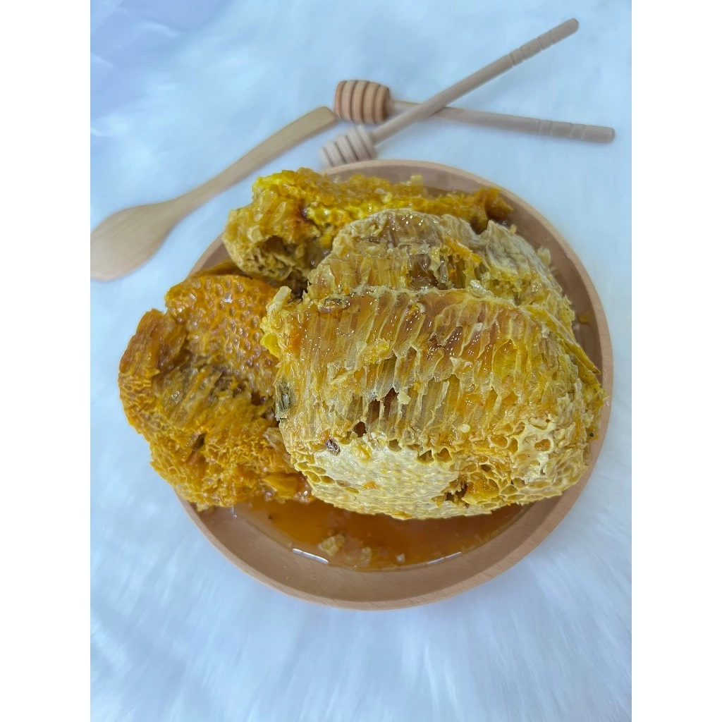 Sáp ong khoái thiên nhiên cắt miếng cả mật ong là sản phẩm hoàn toàn tự nhiên, được thu hoạch từ tổ ong khoái – loài ong rừng quý hiếm sống trong các khu rừng nguyên sinh. Mỗi miếng sáp ong không chỉ chứa mật ong nguyên chất mà còn giữ trọn vẹn hương vị ngọt ngào, thơm lừng cùng các dưỡng chất tuyệt vời từ thiên nhiên.